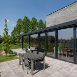 The full glass facade on the south side provides a lot of heat during the winter months. The built-in sunshades make sure that it never gets overheated.