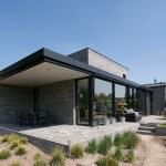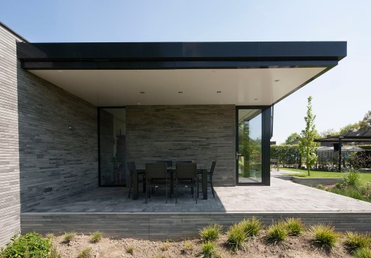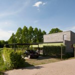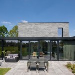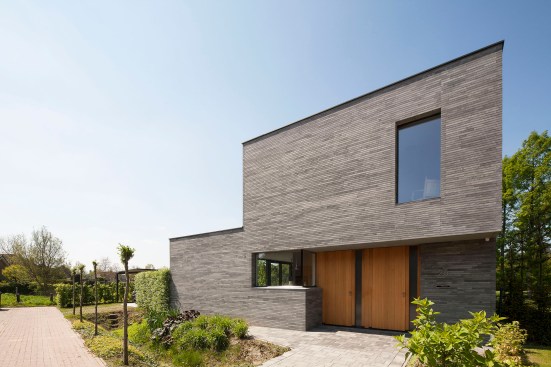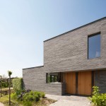 Due to the sober design, the house is not too present. She is visually restrained in the surroundings as an average farm in this neighborhood does. However, the long concrete stones, in different shades of grey, create a vivid appearance and is anything but rural. The minimum number of different materials ensures a modern modest appearance.