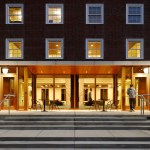Martindale Hall is Wabash’s largest residence hall and had not been updated since its original construction in 1961. The building did not meet ADA requirements and its interconnected suites were inefficiently organized. The newly renovated five-story Martindale Hall provides updated room types to meet the demands of today’s college students. While there is a dining hall on campus, some units have kitchenettes to supplement the campus-wide food offerings. The showcase moment of the building is a new glass entrance leading into a two-story common area with a fireplace. The building abuts the neighboring historic campus arboretum and the glass entry fosters an indoor/outdoor experience which connects students with the campus environment.
