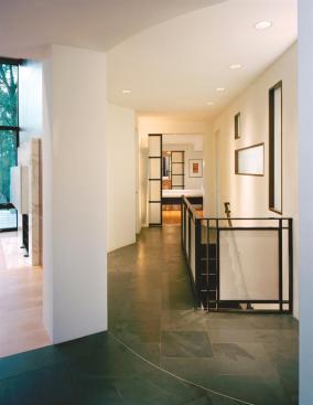 Inside, Gurney smoothed out kinks in the original floor plan, applying a sophisticated and restrained schedule of finishes. Floors are black slate and maple. Stark white walls contrast with dark wenge wood trim. Heavy aluminum plate provides an unusual and appealing accent material for shelves and a kitchen counter and backsplash. Our judges admired the way the remodeled building nestles into its mature landscape, rated the pool addition “awesome,” and deemed the result “a very controlled composition with a very sophisticated color palette.”