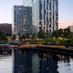 The new 150,000-square-foot residential tower, is a new landmark in this vibrant 24-hour neighborhood adjacent to the earlier constructed 321-unit Watermark West. With a distinct identity, the project is strategically woven together with Watermark West to form the premier residential destination in the area. Together, the two towers offer extensive private and public amenities including a fitness spa, 24-hour concierge services, roof terrace, as well as retail, restaurants, outdoor parks, and a small kayak facility on a canal that feeds into the Charles River.