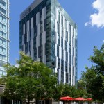 The 17-story tower is composed of glass and a metal curtainwall that contrasts and complements the punched windows in the adjacent building. The South side of the building features unified retail at the base that is fully integrated with existing retail at Watermark West. The North side features a distinct identity and entrance clearly separating the identities of the two residences. The new tower features 144 units composed of studios, 1- and 2-beds, and two penthouse units on the 16th and 17th floors. The 2nd floor roof deck will be integrated with Watermark West’s existing roof deck to create a seamless outdoor environment and provide access to the fitness spa in Watermark West. There are 4 stories of below-grade parking that tenants have access to.