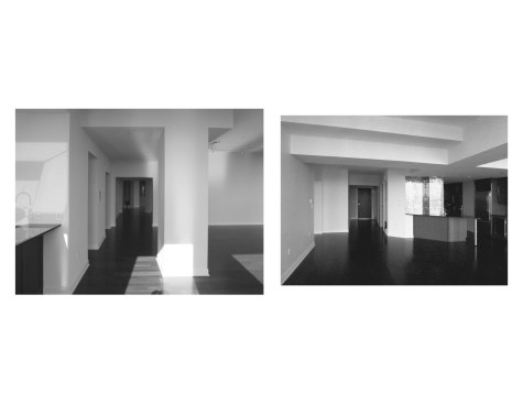 An open-plan living area spans the north side of the apartment, with a master bedroom suite along the east edge, and a second bedroom and supplemental living spaces along the south. The apartment has a 10-foot-high ceiling (with floor-to-ceiling glazing to match), but building infrastructure precluded taking advantage of the full height in every location. Gurney devised an origami-inspired composition of ceiling planes for the main living areas that maintains a continuous finished ceiling while concealing fixed building elements above.