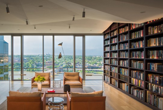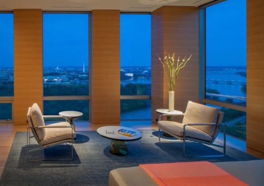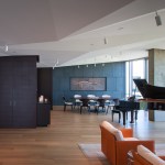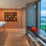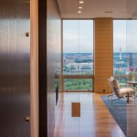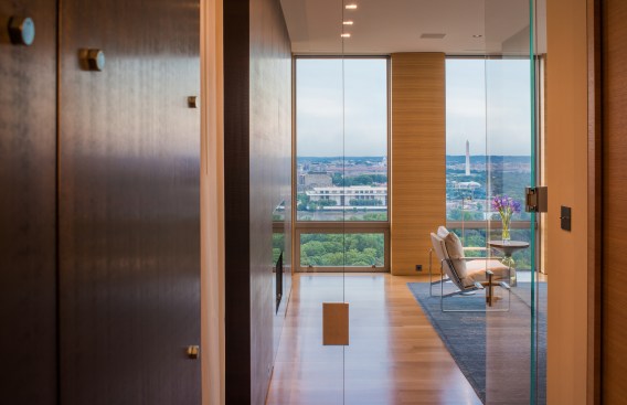 Located in suburban Arlington, Va., this condominium apartment sits atop a 30-story-tall structure with panoramic vistas of the nation’s capital, just slightly north of the east-west axis of the National Mall. The client requested “open space focused on the views,” according to local architect Robert M. Gurney, who gutted the space and transformed the 4,600-square-foot apartment into a series of carefully wrought spaces that make the most of the stunning perspectives on three sides of the building.