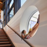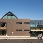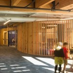 As stewards of the next generation, Westside was committed to extensively reusing the existing church structure and minimizing the embodied energy used in new construction. The church’s soaring wishbone-shaped nave was the departure point for our imagination. Inspired by the soaring nave we preserved the 45’ glulam arches and reconfigured the space to accommodate classrooms, offices, support, lunchroom, and storage, preserving the existing gym. The challenge was to connect the existing structure to the new entry foyer in a way that communicates a sense of unity. The architecture provides a range of engaging learning environments. Idea spaces carved into the classrooms provide flex space for spontaneous meetings and informal, smaller, group learning. Other found spaces encourage interaction, creativity, and curiosity. The new entry forms a central, transparent gathering and display space where parents, faculty and students convene and connect. The unified structure embodies learning, linking the school’s present with its future and past.