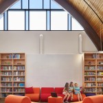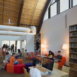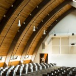 All aspects of energy savings were looked at in the design, including lighting, daylighting, HVAC, natural ventilation and future PV panel mounting provisions. Lighting throughout the building is entirely LED, with an installed lighting power density of less than 0.3 W/ft2. After consulting with Seattle’s Integrated Design Lab, carefully oriented and sized skylights were introduced into the nave roof to reduce electric lighting loads in the newly created auditorium and library.