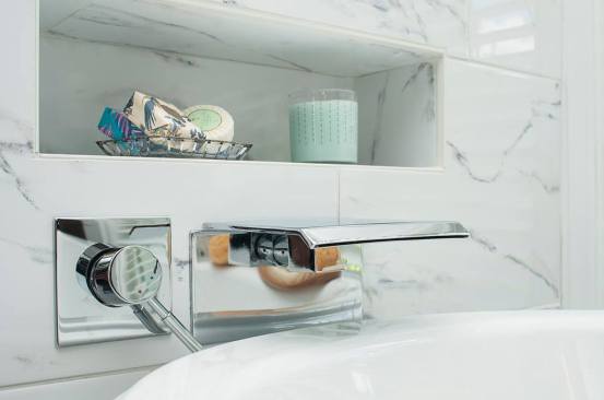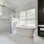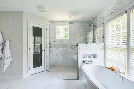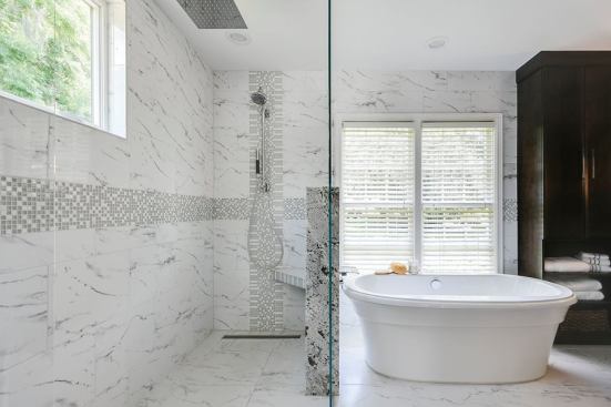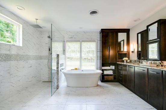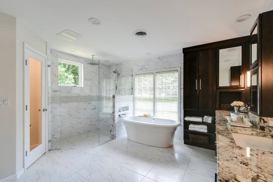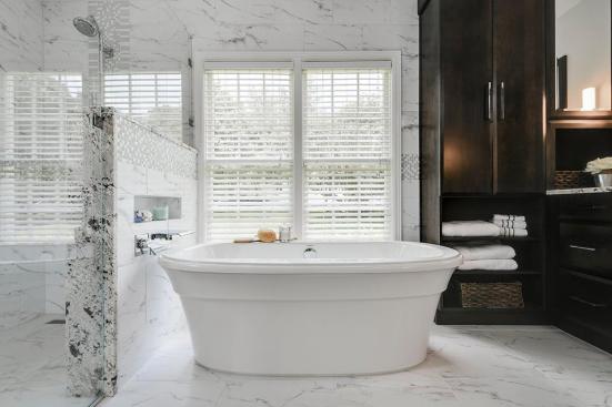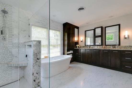 Complete transformation from dated master bath and den to a spa inspired oasis including spacious walk in closet.