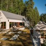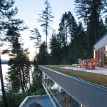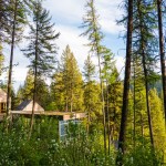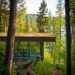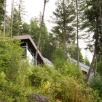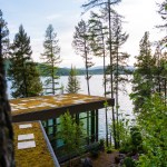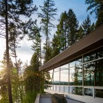 The flat roof portions of the building are designed as green roofs, and double as delightful outdoor living spaces in the summer months, allowing the owner to relax and take in the down-slope view of Whitefish Lake after a few laps in the pool.