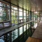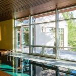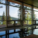 While the client was not interested in pursuing LEED for the project, the building does have sustainable mechanical systems in place: The primary HVAC systems are water source heat pumps that utilize the water of nearby Whitefish Lake as their source of heat addition and heat rejection. Waste energy recovered from dehumidification is used for pool and interior space heating. Radiant floor heating is incorporated throughout the facility. A direct-digital controls system was provided for automated control and monitoring of the HVAC systems and management of HVAC energy consumption. Motorized shades were provided for solar control and to reduce heat transmission.