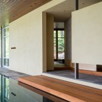 This curious program consisted of a 75′ single lane lap pool, a Japanese soaking tub, a changing and shower area, an exercise room, and to add some contrast, a fine art gallery. A small collection of buildings sited randomly along the steep hillside was envisioned, nestling themselves into the contours where appropriate, but also boldly contrasting the grades by extending portions of the building out over the steep slope in locations of surprise and delight. The lengthy lap pool, it was decided, would be the showcase element that would contradict the site’s natural contours, manifested in a long glassy extrusion that floats out and over the hillside.
