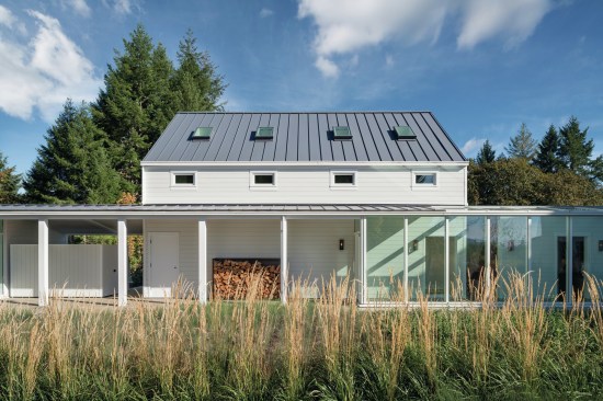 Borrowing cues from its namesake wine-making and agrarian heritage, the Willamette Valley Residence is sited on 83 acres of rolling green hills in Sheridan, Ore. Designed as an updated farmhouse by El Segundo, Calif.–based Rockefeller Kempel Architects, the home strikes a delicate balance between modern and traditional architecture, inviting contemporary design elements into an archetypal farmhouse vernacular.