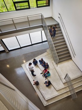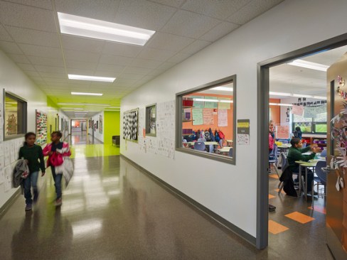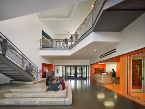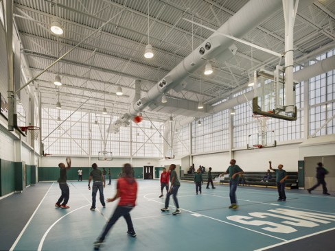 Metcalfe worked with Wissahickon Charter School (WCS) to design a new 48,000-square-foot school building, on a brownfield adjacent to the Awbury Arboretum in Germantown. WCS’s mission focuses on the environment, service learning, and family involvement. Its new home is a light-filled, sustainably constructed building featuring a green roof, public meeting spaces, composting, a student-run bio-diesel program, rainwater permeable parking and sidewalks, and a programmatic connection to the Awbury’s gardens and farmland for outdoor education. The school’s entry and hallways are punctuated by social spaces that facilitate informal learning and social interaction.