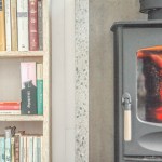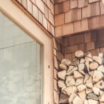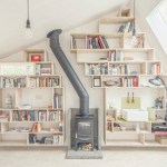 Externally, the glowing cedar facade, shingle cladding, log store and chimney all play a part in creating this world. Inside, a large north-facing skylight floods the workspace with natural light. On the gable wall, a bookcase meanders around the wood burning stove, providing a centre piece for the client to store his library of books. Looking back out over the garden, the glazed sliding door gives onto a covered verandah – a space perfect to enjoy the very worst of the British weather.