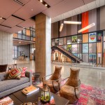 The project provides a variety of resident amenities designed to promote community and social interaction among residents. The building’s lobby includes a living room and landscaped garden designed and equipped to promote gathering, lounging and working; a grand stair leads from the lobby to the Loft Level fitness center and dog playroom. Level 3 offers a lounge and game room adjoining the 13,000 SF recreation deck, including swimming pool and deck, grilling stations, lawn, and viewing decks with fire pits. Level 18 features 2 lounges with a demonstration kitchen and movie room, and a landscaped rooftop deck with 360-degree views of the Chicago skyline.