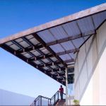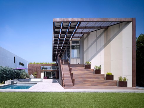 And so it needs to be with solar panels, Scarpa insists. They have to contribute to the architecture. He and his team accomplished exactly that when they positioned the solar collectors on the Yin-Yang House in Venice, Calif. The 175-watt panels are integrated into the roof’s overhang in a louvered pattern that’s entirely intentional, the panels sloped, of course, to improve collection of the sun’s energy. The designers included gaps between the panels, so that sunlight could be filtered in between them. The result is a solar array that doesn’t just grab sun but provides shade, too. Perforated metal on the overhang continues the filtering done by the solar panels. At 12 kW, this home’s solar array is a beefy one—the biggest system of its kind currently allowed for residential use. But for all their collective heft, the panels make sense as a part of the whole.