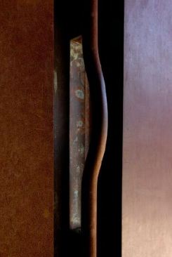 Scarpa’s choosing to set the solar array front and center, plus the use of industrial materials such as steel and concrete make for a look that’s modern, to be sure. But those cool elements are balanced by the warmth of wood. They are also offset by thoughtful, handmade touches. The front door is metal and measures 6 feet by 10 feet, with a forged steel bar stretching from top to bottom. To relieve the door’s massive feel, Scarpa (trained as a sculptor) wanted to add a tactile, simple element. At door-handle height, the floor-to-ceiling bar is bent, forming a bump-out, inside of which nestles a piece of naturally oxidized metal. The speckled metal serves as a grip, its green patina adding texture and visual interest, a small, functional bit of sculpture interrupting the vast flat plane of steel. This quiet flourish sets up a balance of industrial with handmade—a balance that helps the Yin-Yang House to wear its name well.