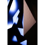 On a fundamental level, our collaborative is interested in the relationship between form and light. In the case of Zoom, the bright/dark patterns generated when light strikes the object’s surfaces obliquely begin to subtly invoke depth – a graphic effect explored by the figure/ground work of op artists such as Bridget Riley and Victor Vasarely. Such work takes advantage of the constraints within the microscopic physical geometries of our own sight organs, demonstrating the manner in which limitations can yield transcendence, by producing depth and animation within the flat and static.