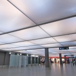 SEFAR® Architecture’s LightFrame system warmly welcomes passengers and employees with large-scale overhead lighting inside the Zurich Airport in Zurich, Switzerland. The modular fabric ceiling covers 3,229 square feet of the redesigned shopping concourse between Terminal 1 and Car Park Elevator 1, improving lighting effects and spatial acoustics.