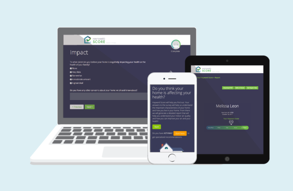 Hayward Score surveys environmental and climate data from the structure and system characteristics of a building—indoor air quality, room comfort, water purity, light, noise, odors, etc.—and captures health information from each resident to create an algorithm that rates home conditions as healthy or unhealthy. Score rank from “very poor” to “excellent,” at any given time. As of June 2019, more than 41,000 households had completed Hayward Score surveys, creating the nation’s largest knowledge base tying building materials, systems, and conditions to the health of their residents.